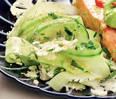 Löjrom med gurka, inkokt kålrabbi och dillolja