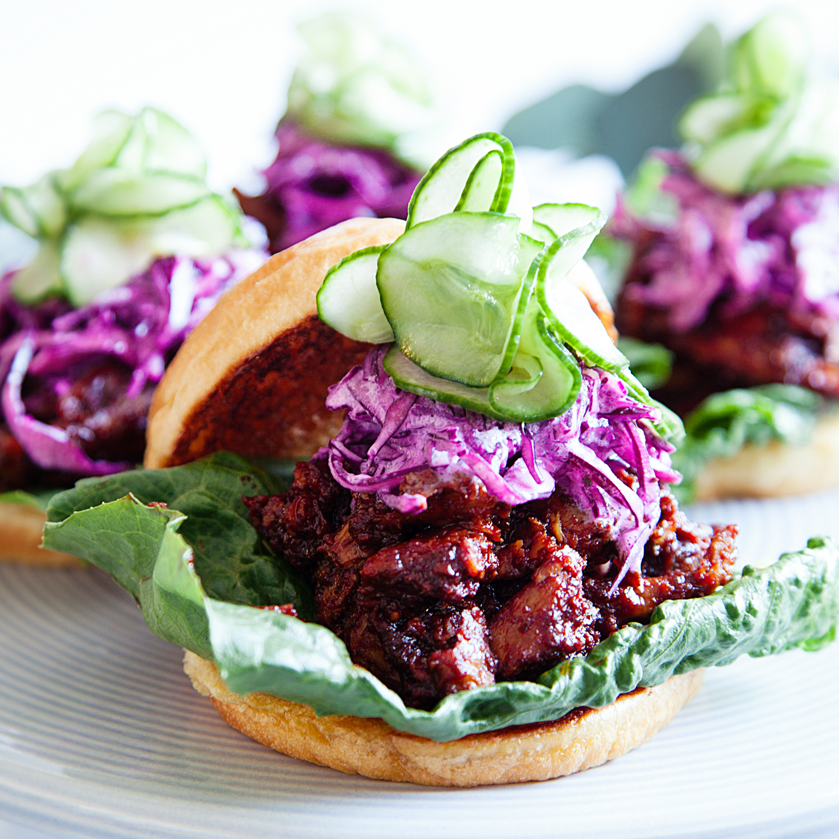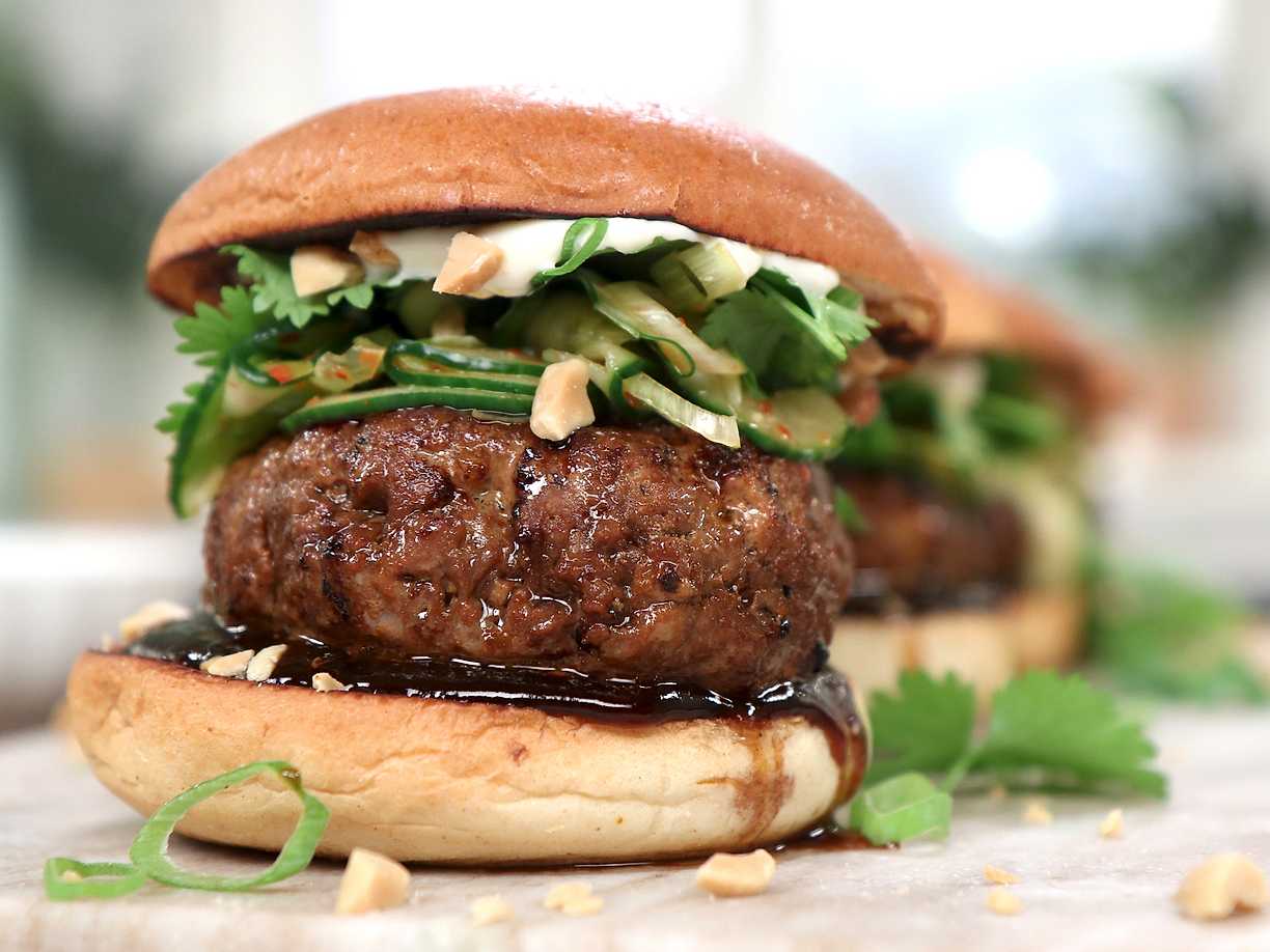 Asiatisk burgare med chilipicklad gurka och hoisinsås