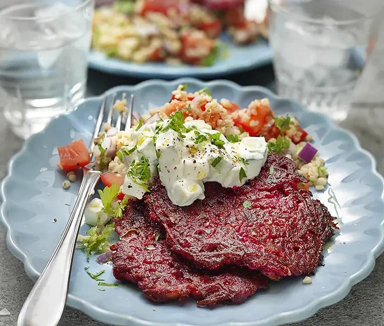 Feta- och rödbetsplättar med gurkröra