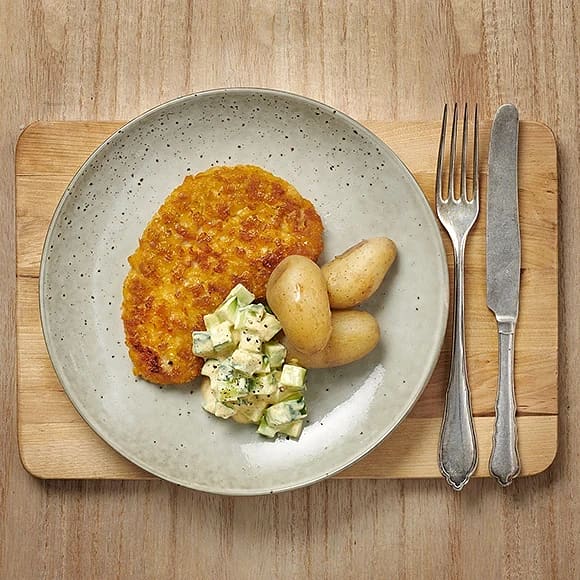 Stekt schnitzel med gul gurkröra
