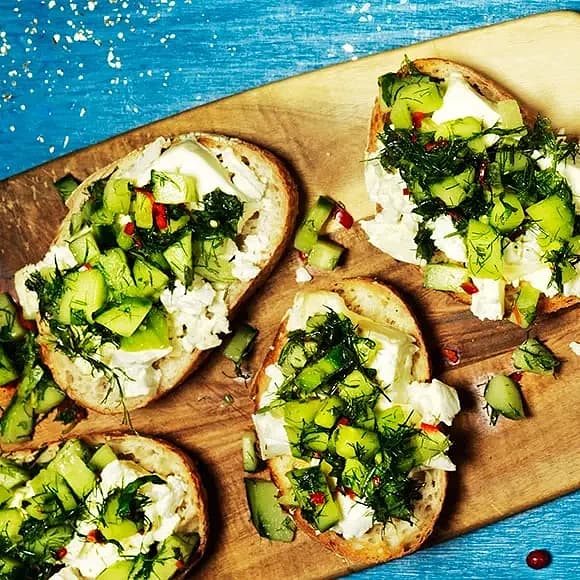 Ljummen fetaosttoast med dillig gurksalsa