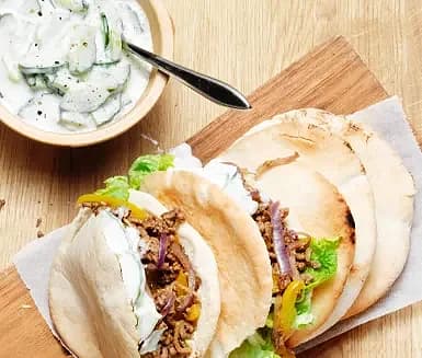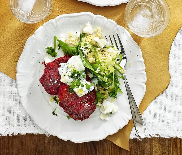 Rödbetsbiffar med gurkyoghurt och fetaost