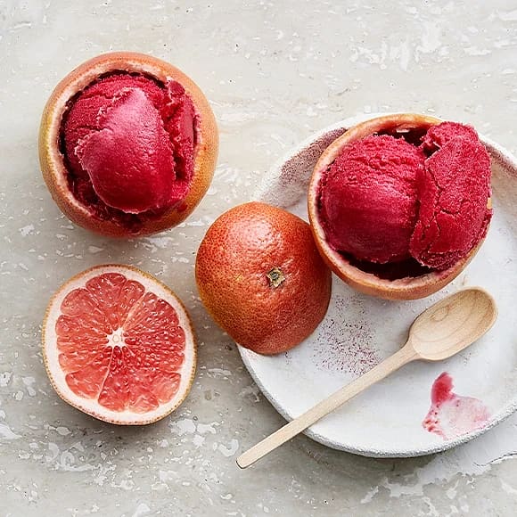 Hallon- och grapefruktsorbet