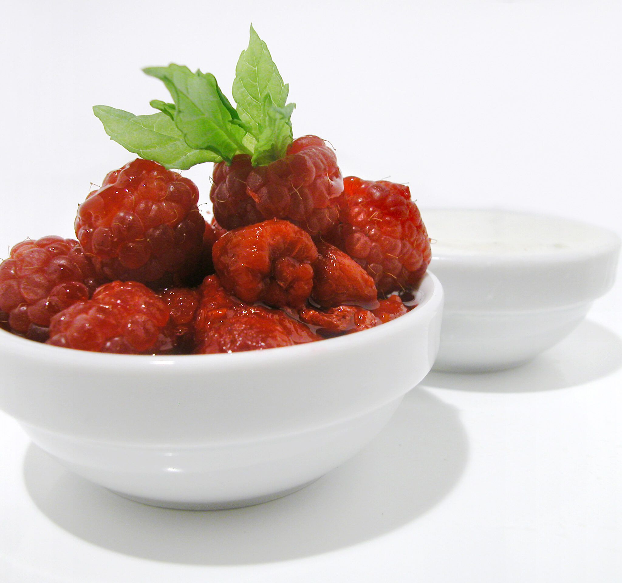 Chokladcrème med limemarinerade hallon