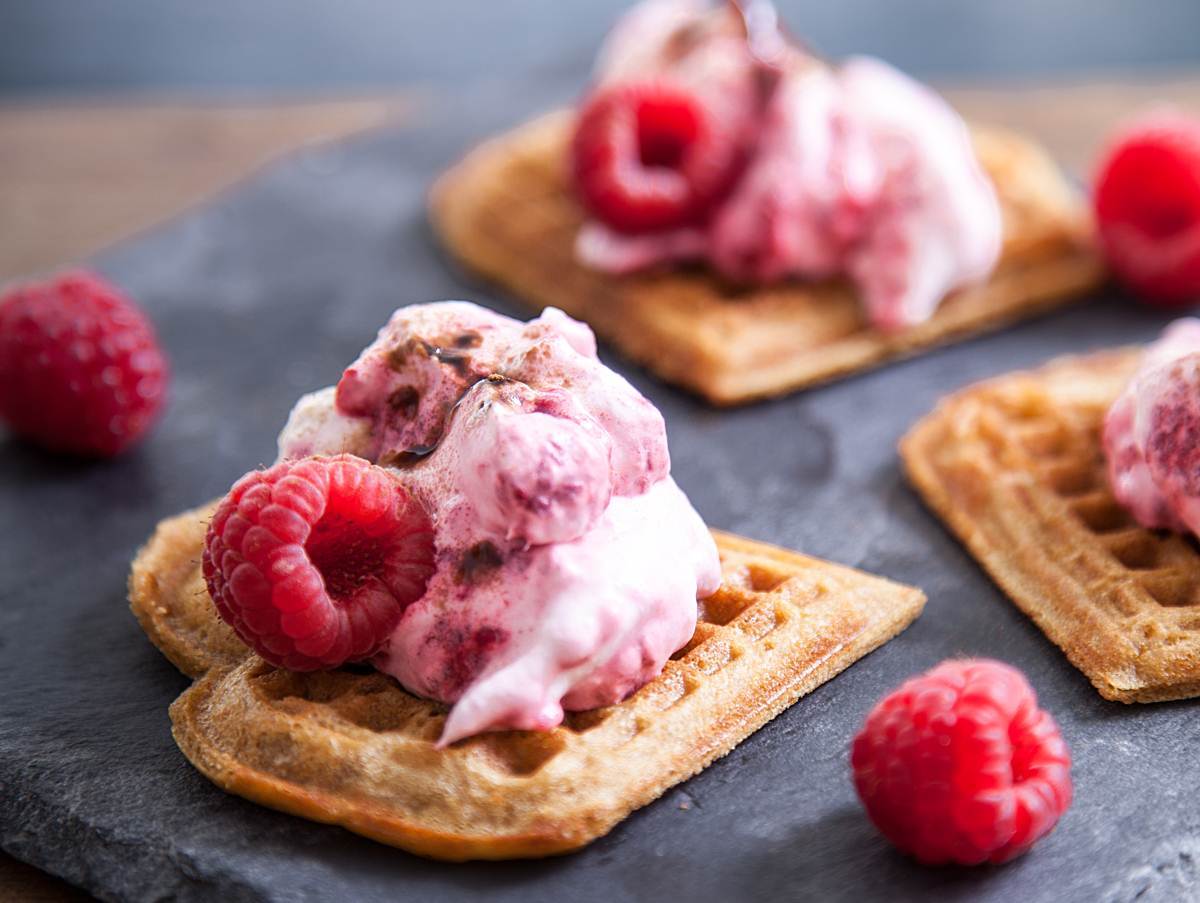 Lakritsvåffla med hallongrädde