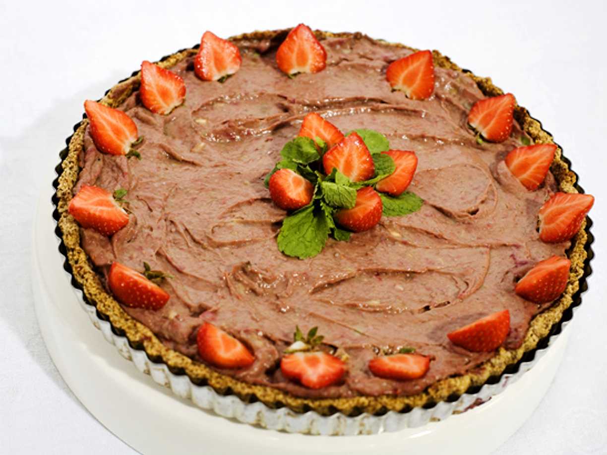 Hallonmoussetårta med jordgubbar