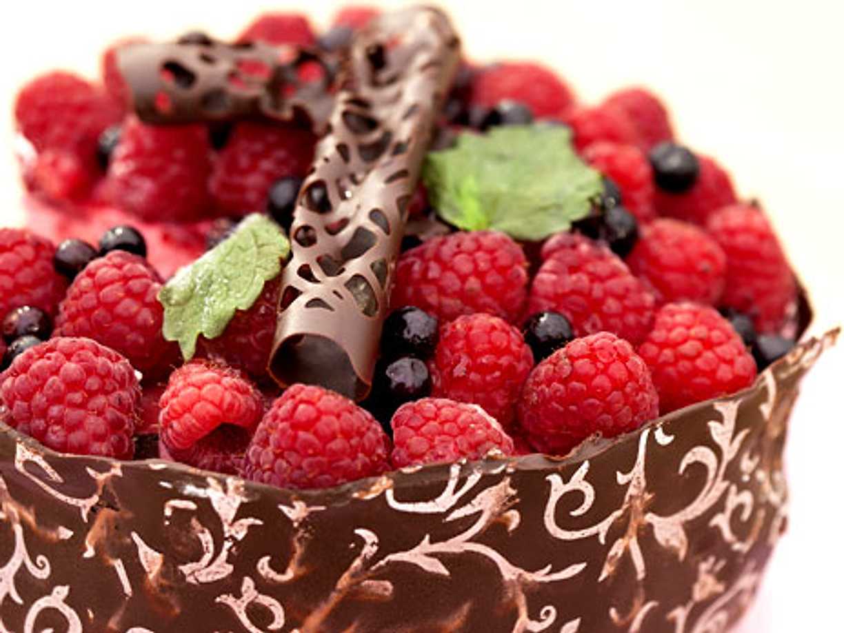Lyxig hallonmoussetårta