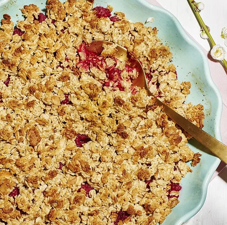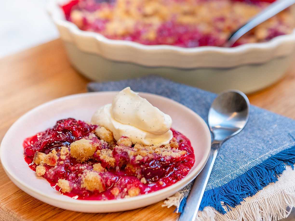 Knäckig hallonpaj med vaniljsås