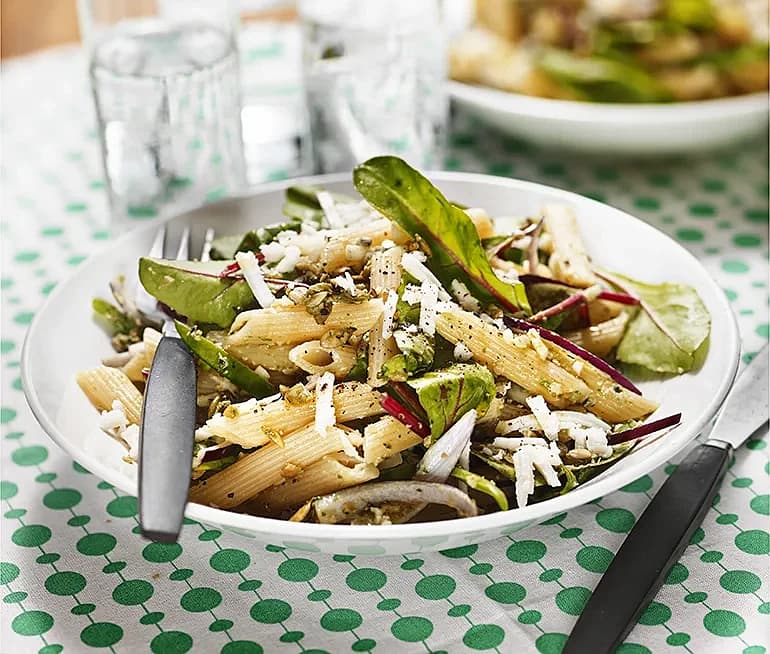 Visar placering 11–13 av de högst betygsatta recepten med halloumipasta.