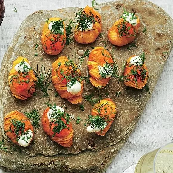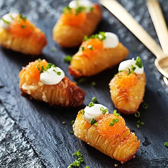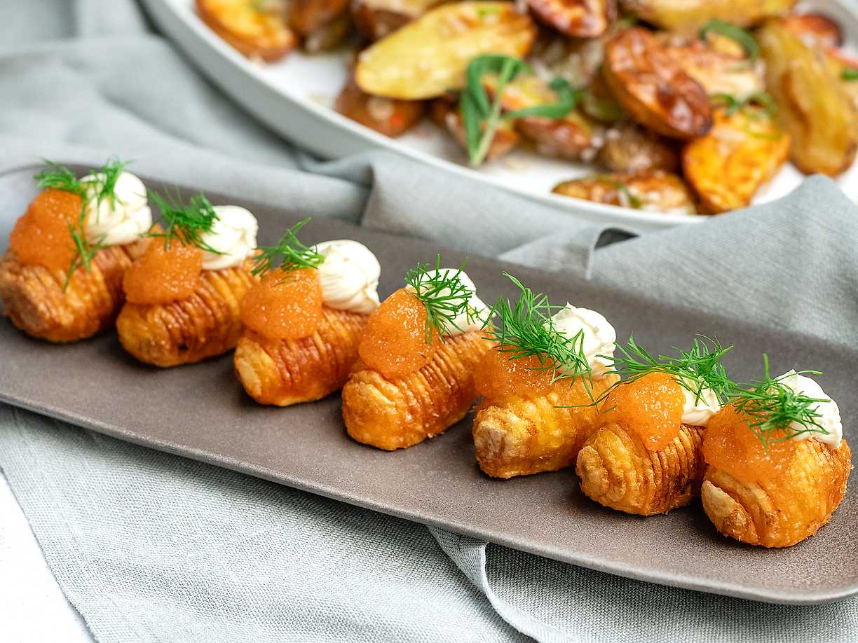 Grillad hasselbackspotatis med löjrom och crème fraiche
