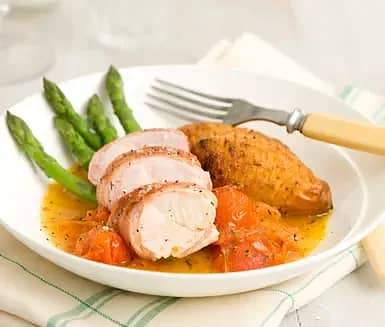 Kyckling Cordon Bleu med hasselbackspotatis och champinjonsås