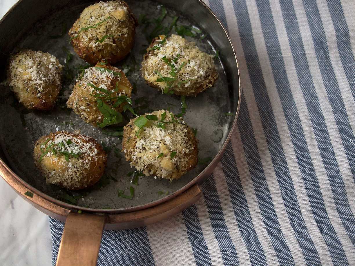 Vegobollar med hasselbackspotatis och örtig gräddsås