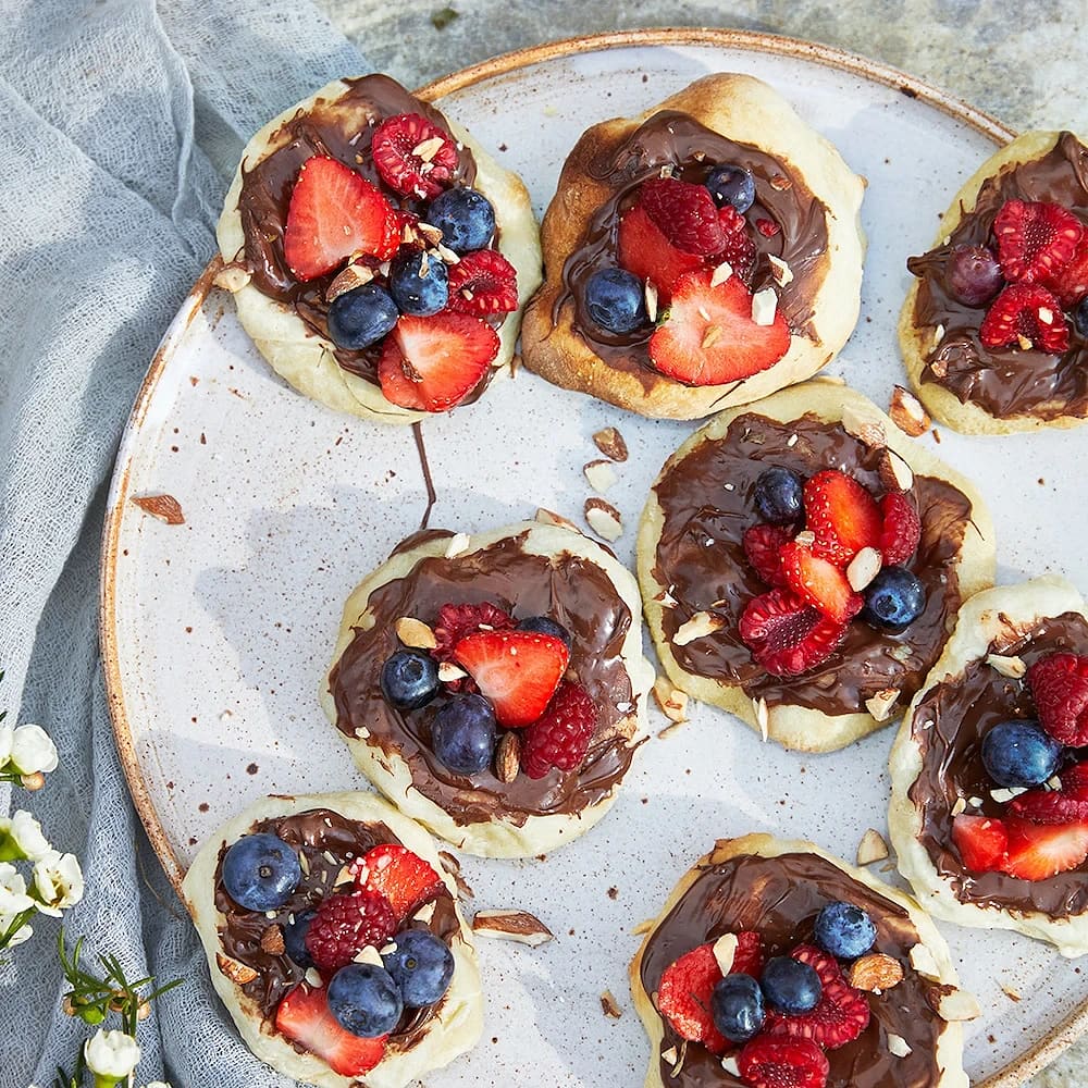 Fattiga riddare med hemgjord hasselnötskräm och hallon
