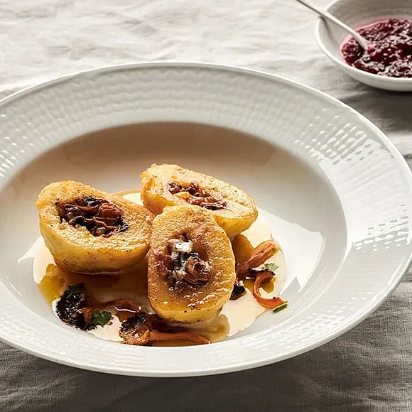 Klassiskt oklassiska kroppkakor med brynt smör, svamp, hasselnötter och lingon