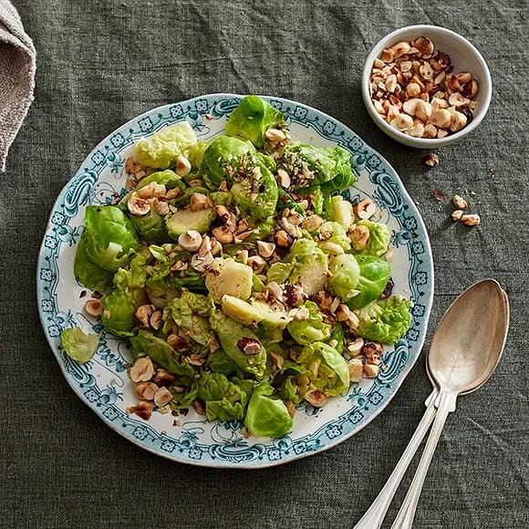 Brysselkålssallad med brynt smör och rostade hasselnötter