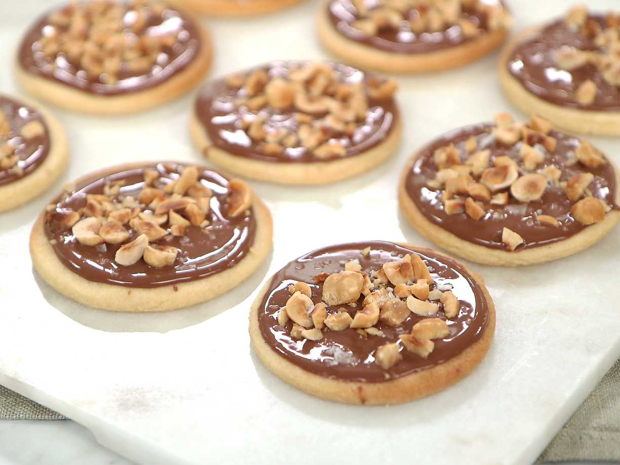 Smörkakor med mjölkchoklad, hasselnötter och flingsalt