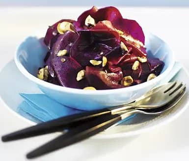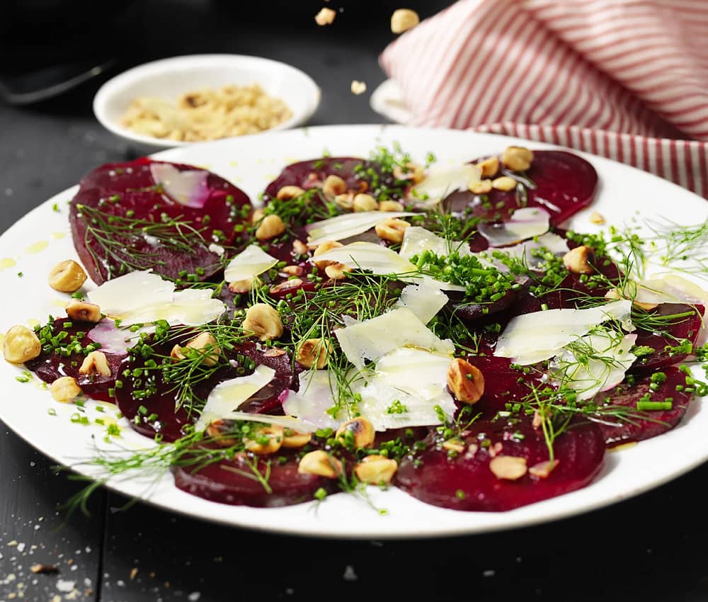 Krispig ost- och rotfruktssallad med hasselnötter och brynt smör