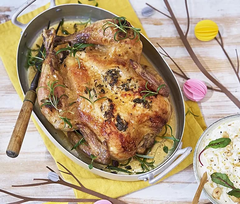 Vårkyckling med krämig kålrabbi och hasselnötter