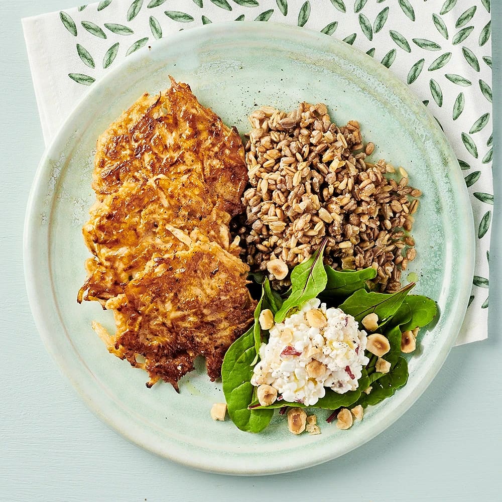 Stekt kyckling med lättstuvad rotselleri och saltrostade hasselnötter