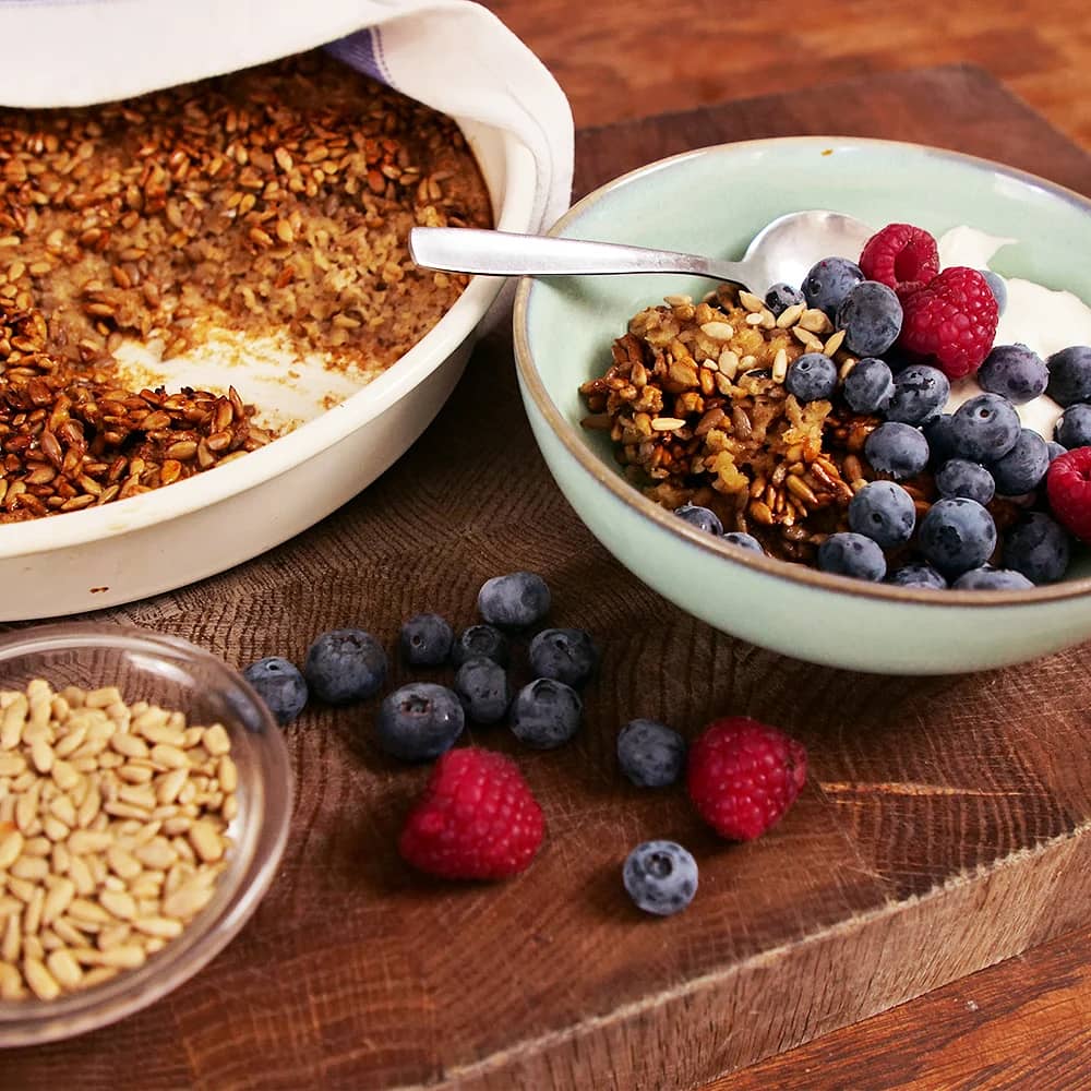 Yoghurt med bär och honungsrostad havre