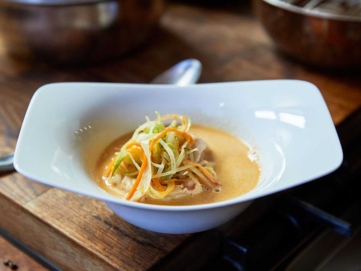 Blomkålssoppa med picklad kålrabbi och havskräftor