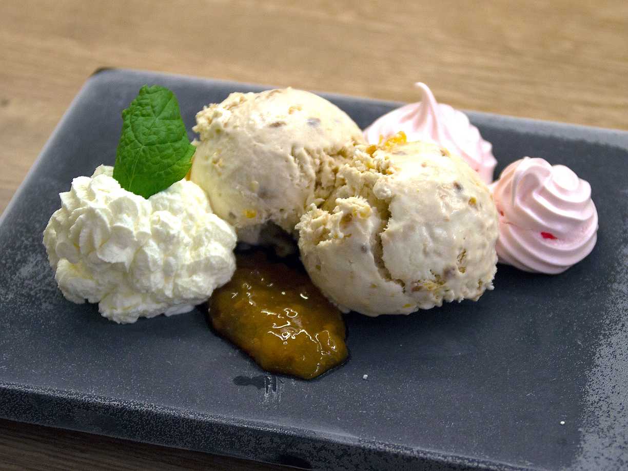 Hjortronparfait med mandelflarn