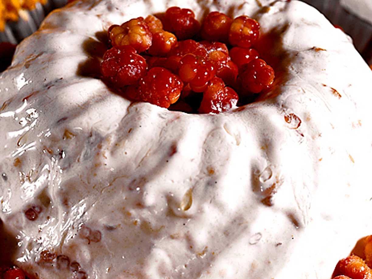 Hjortronparfait på mandelbotten