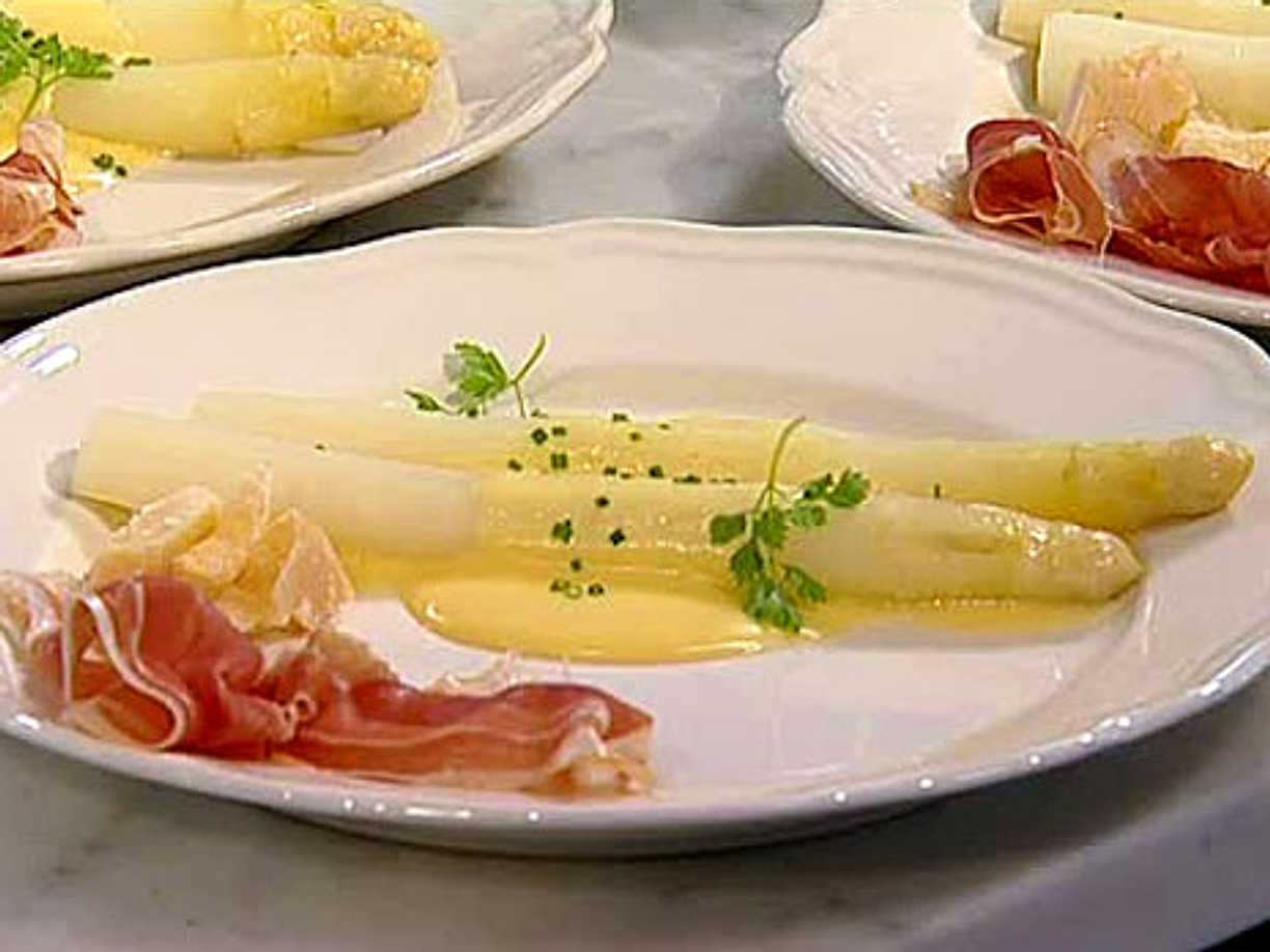 Kokt sparris, hollandaise och knaperstekt sidfläsk