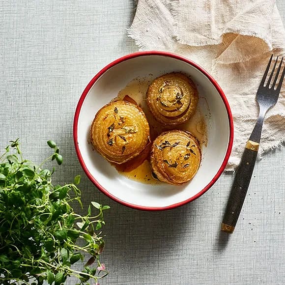 Bakad lök med honung och timjan