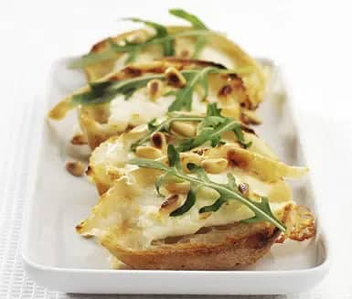 Varm toast med getost och rostade pinjenötter med smak av honung