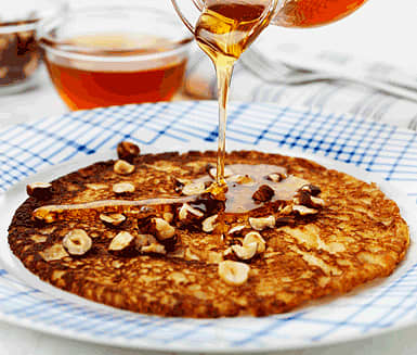 Äppelpannkakor med honung och hasselnötter