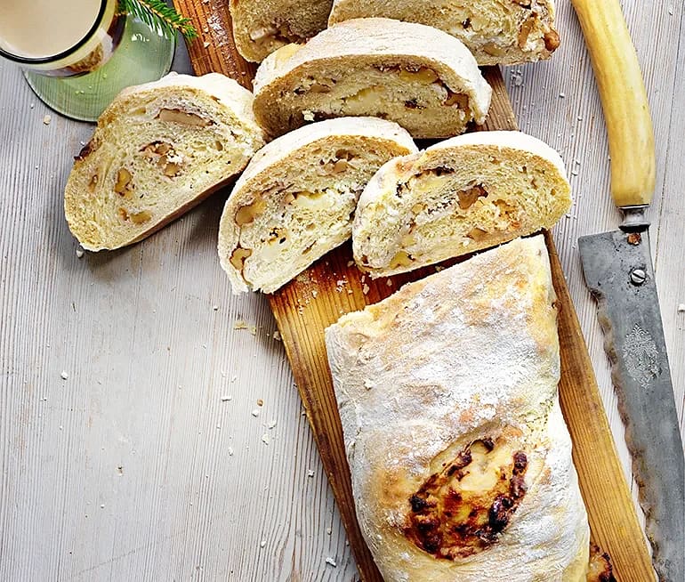 Fyllt bröd med getost, nötter och honung