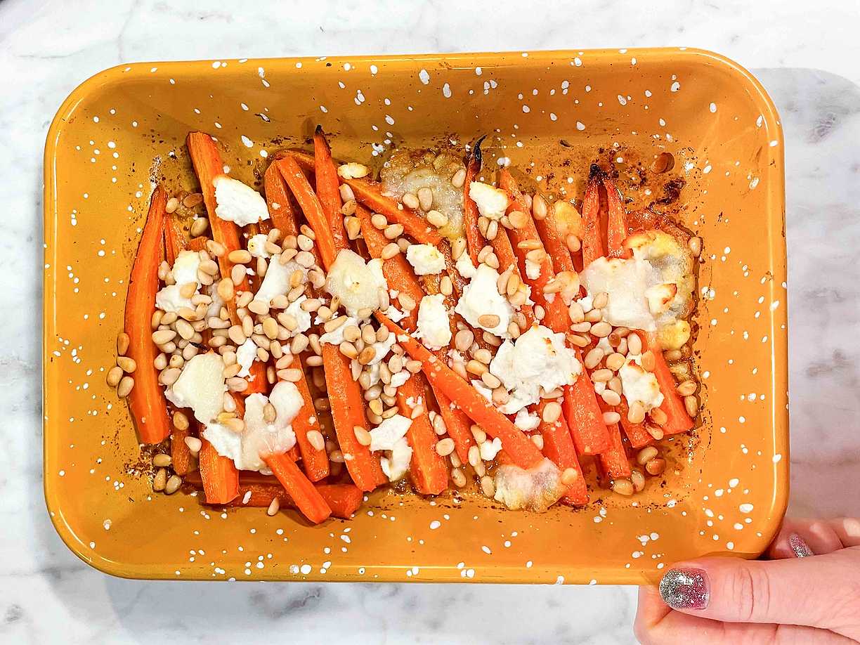 Citronbakade morötter med chèvreost och honung