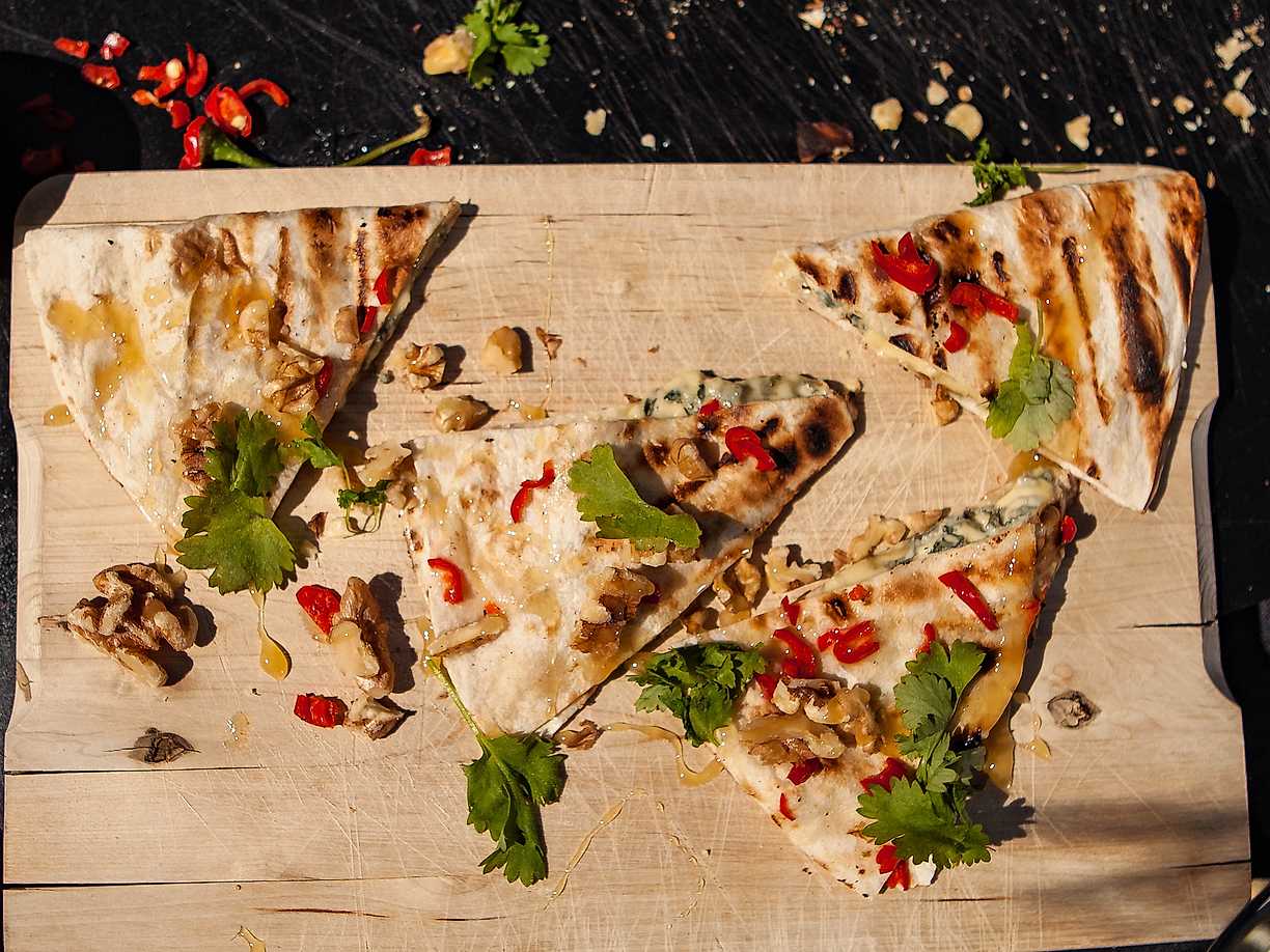 Quesadillas med ädelost, honung och valnötter