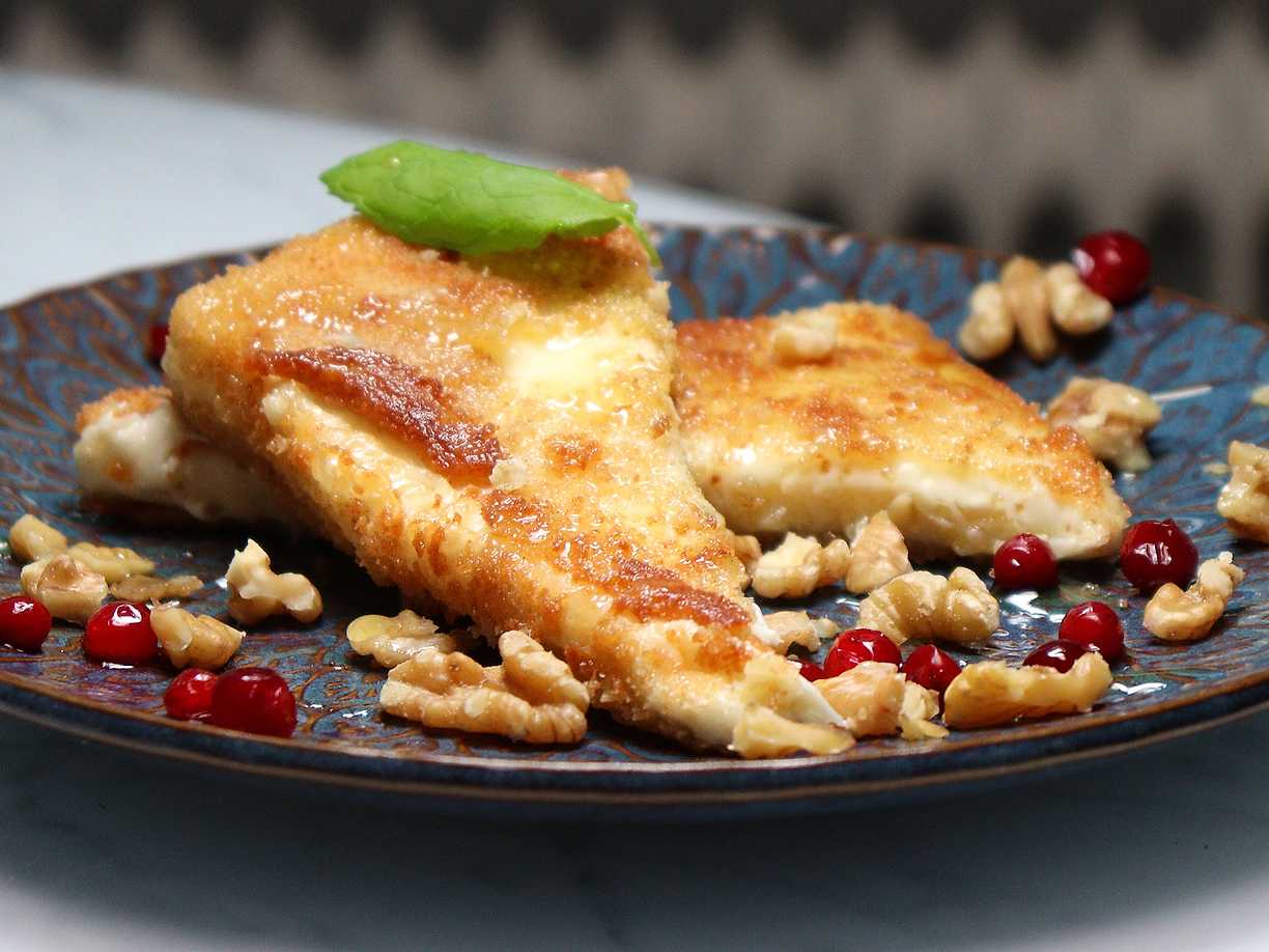 Panerad brieost med honung och pistagenötter