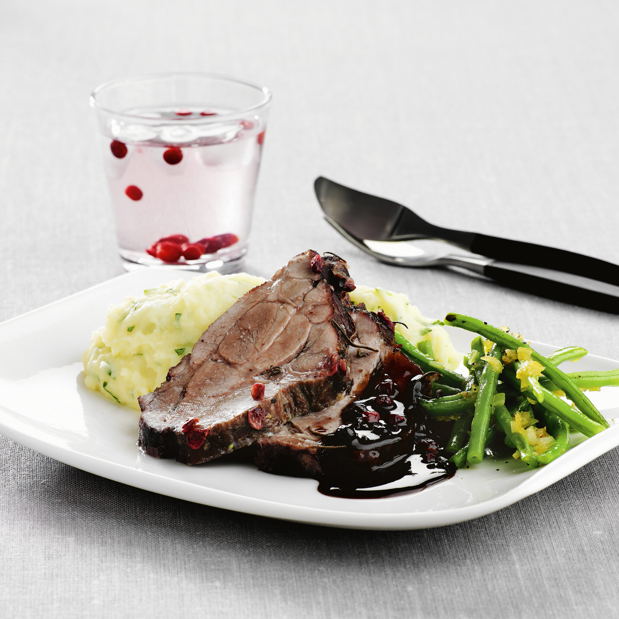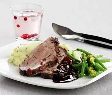 Lammrygg med honungsglaserade betor, chèvregratinerad potatis- och fänkålsgratäng