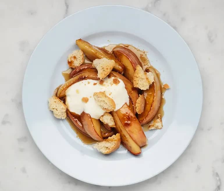 Honungsstekta äpplen med skorpsmulor och kvarg