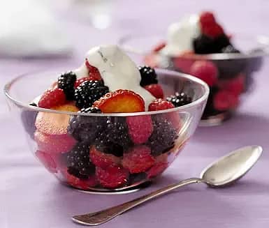 Sommarbär med lime- och myntakryddad honungsyoghurt