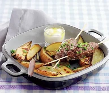 Kryddiga färsspett med honungsyoghurt