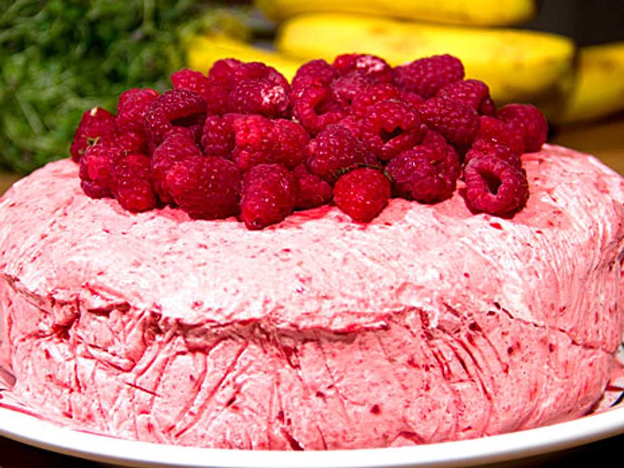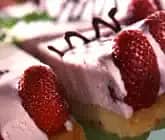 Gräddtårta med jordgubbar och jordgubbsmousse