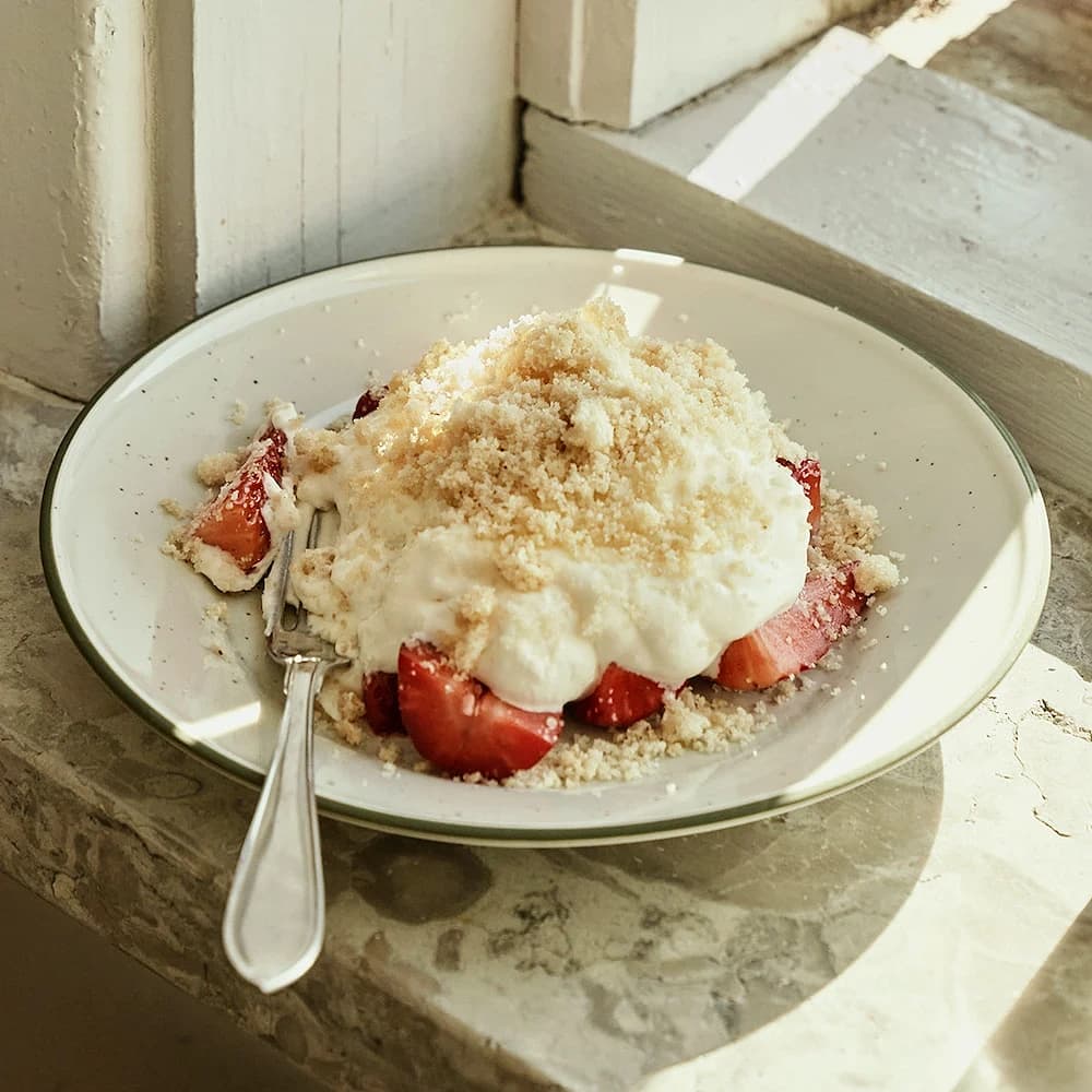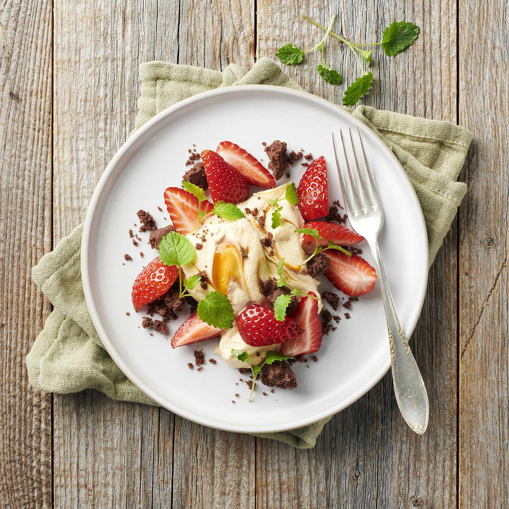 Marinerade jordgubbar med pistage- och mascarponecrème