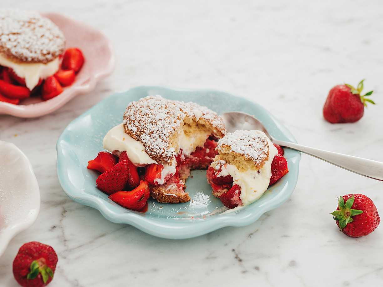 Kokoskakor fyllda med jordgubbar och färskost - Henrik Fexeus recept