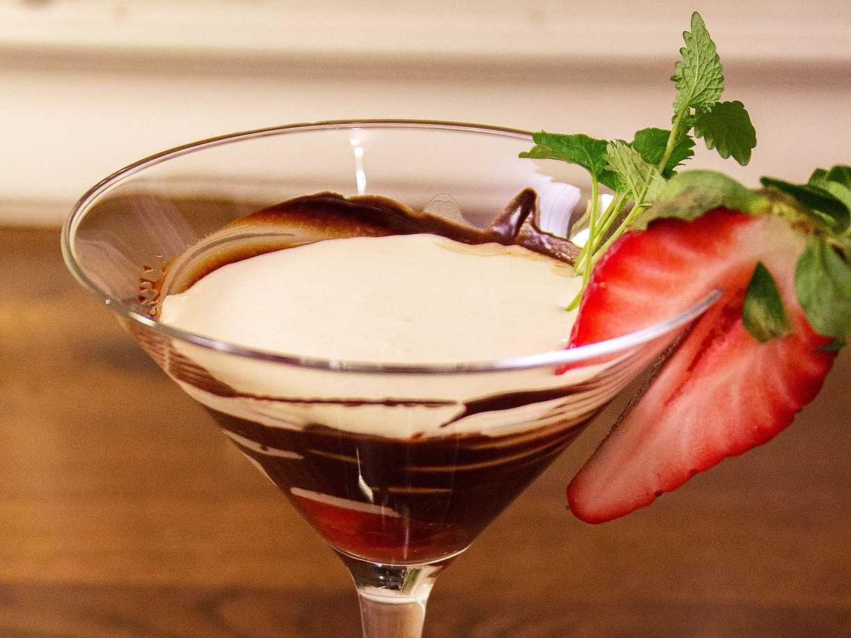 Vit chokladpannacotta med basilikamarinerade jordgubbar
