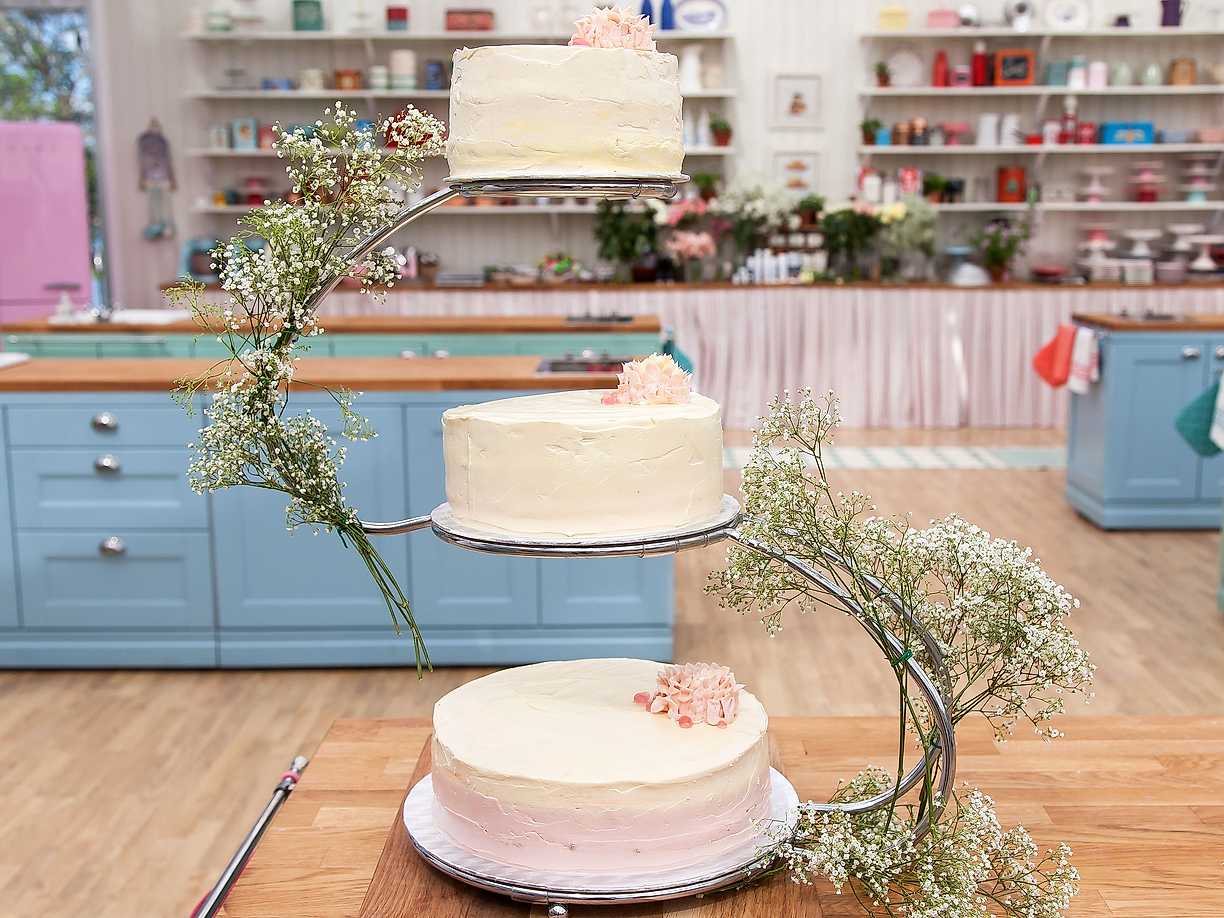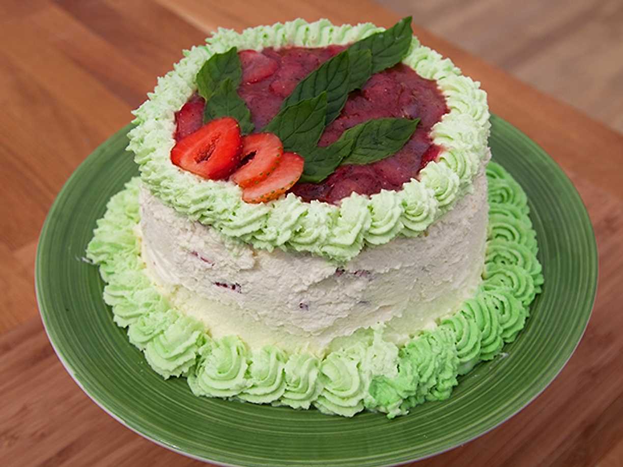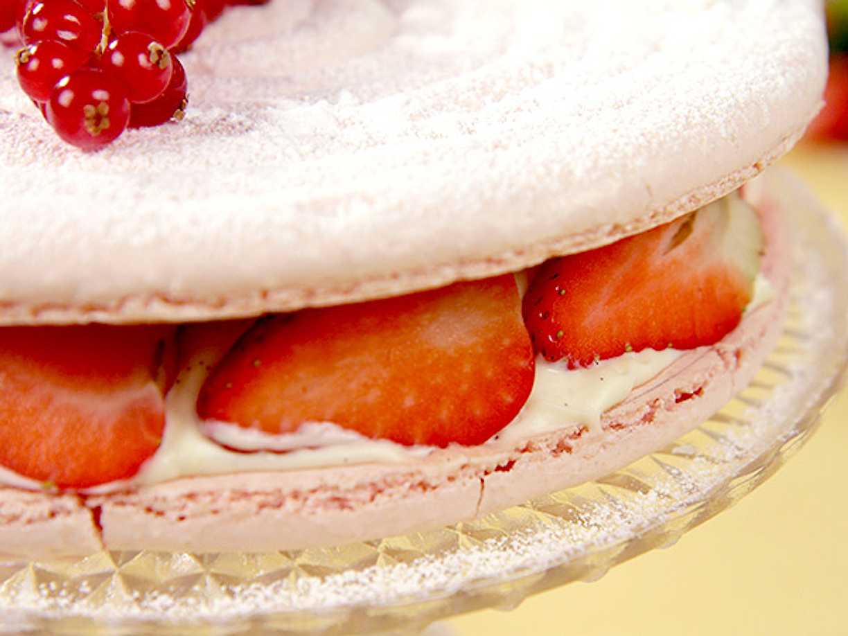 Vit chokladkaka med vaniljgrädde och jordgubbar