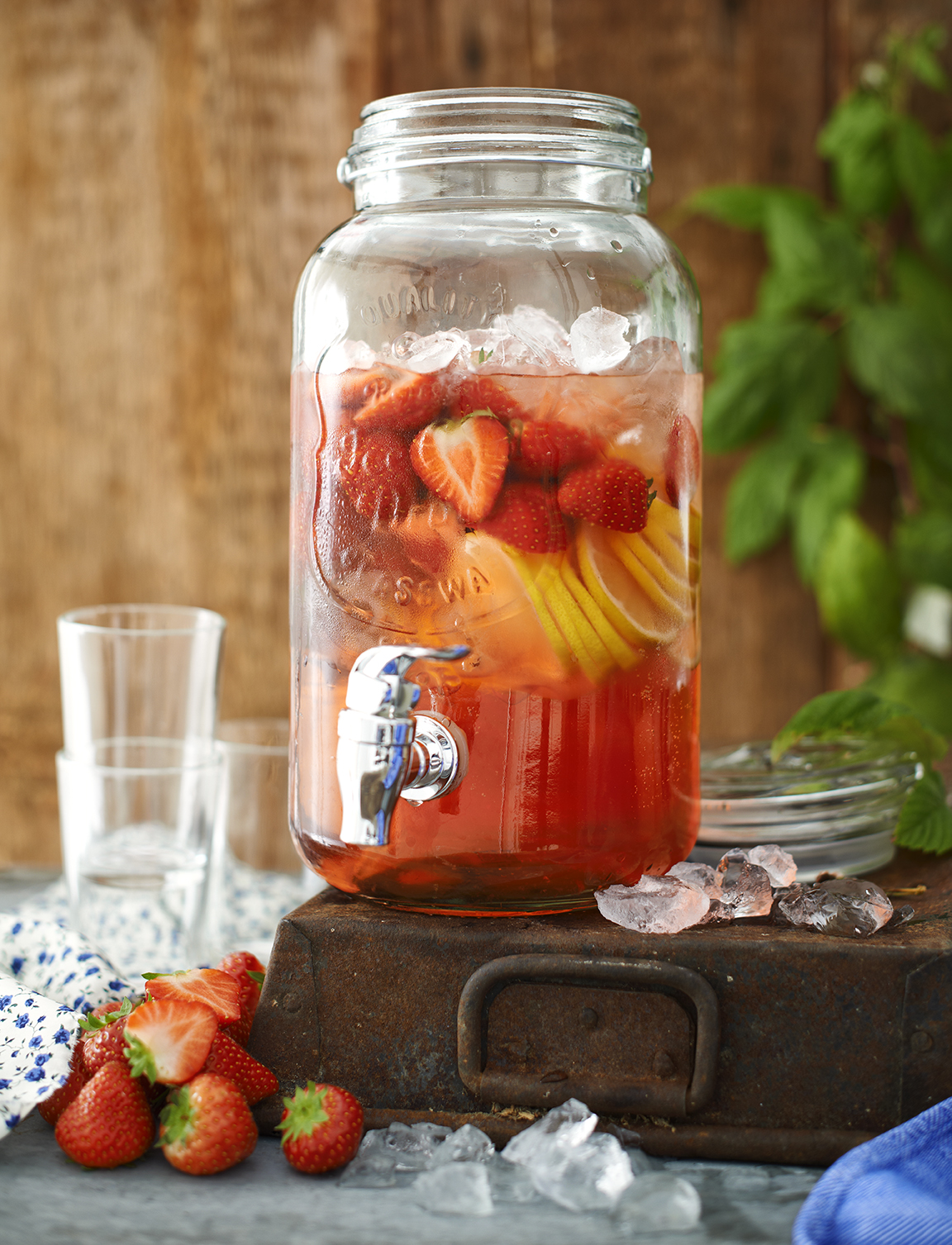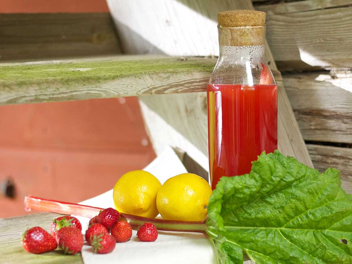 Jordgubbssaft med mynta och rabarber
