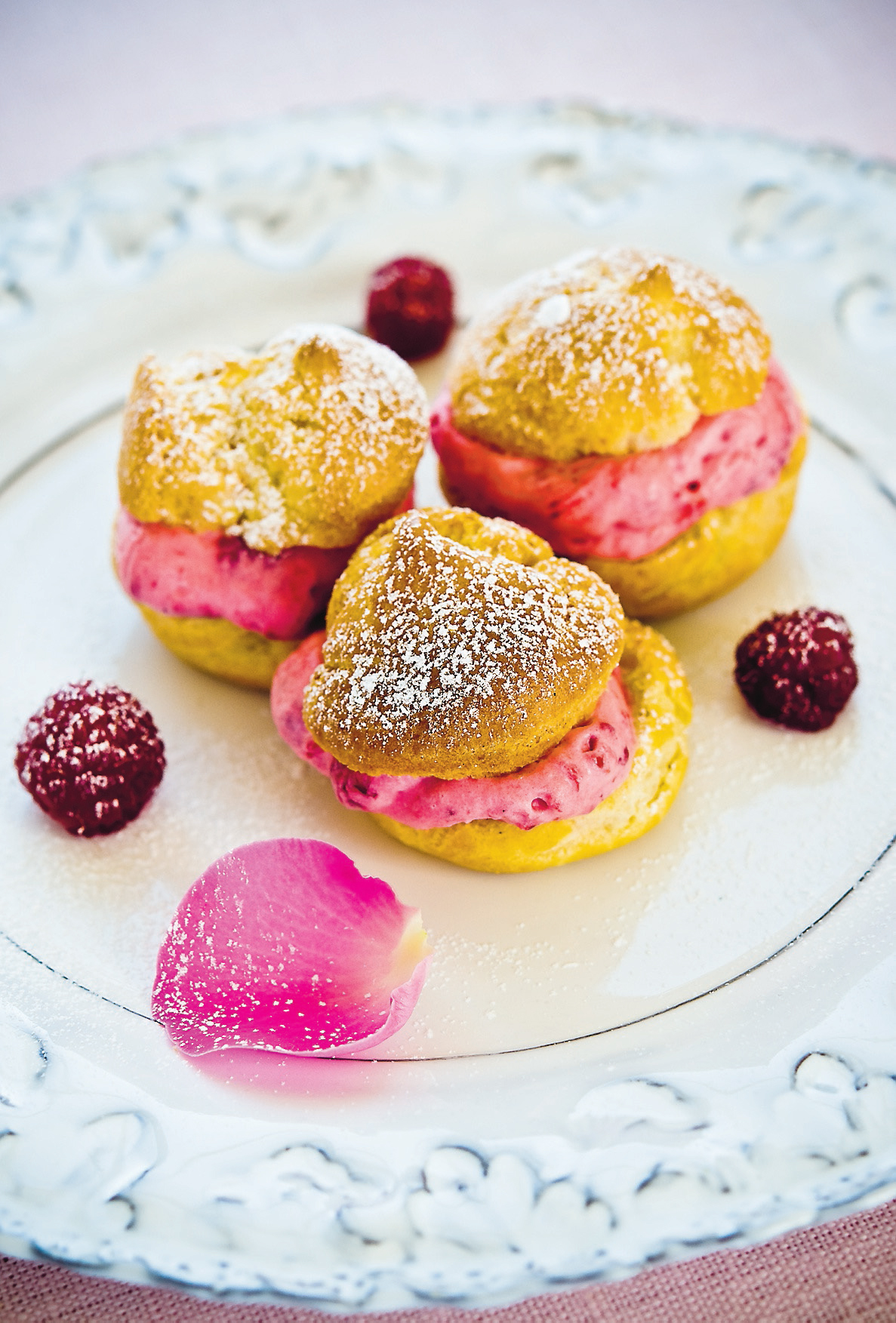 Ljuvligt rosa petit chou-tårta