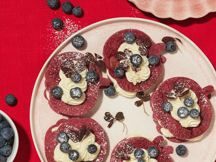 Små pavlovor med nutellaswirl, salt kolasås, grädde och hasselnötskross
