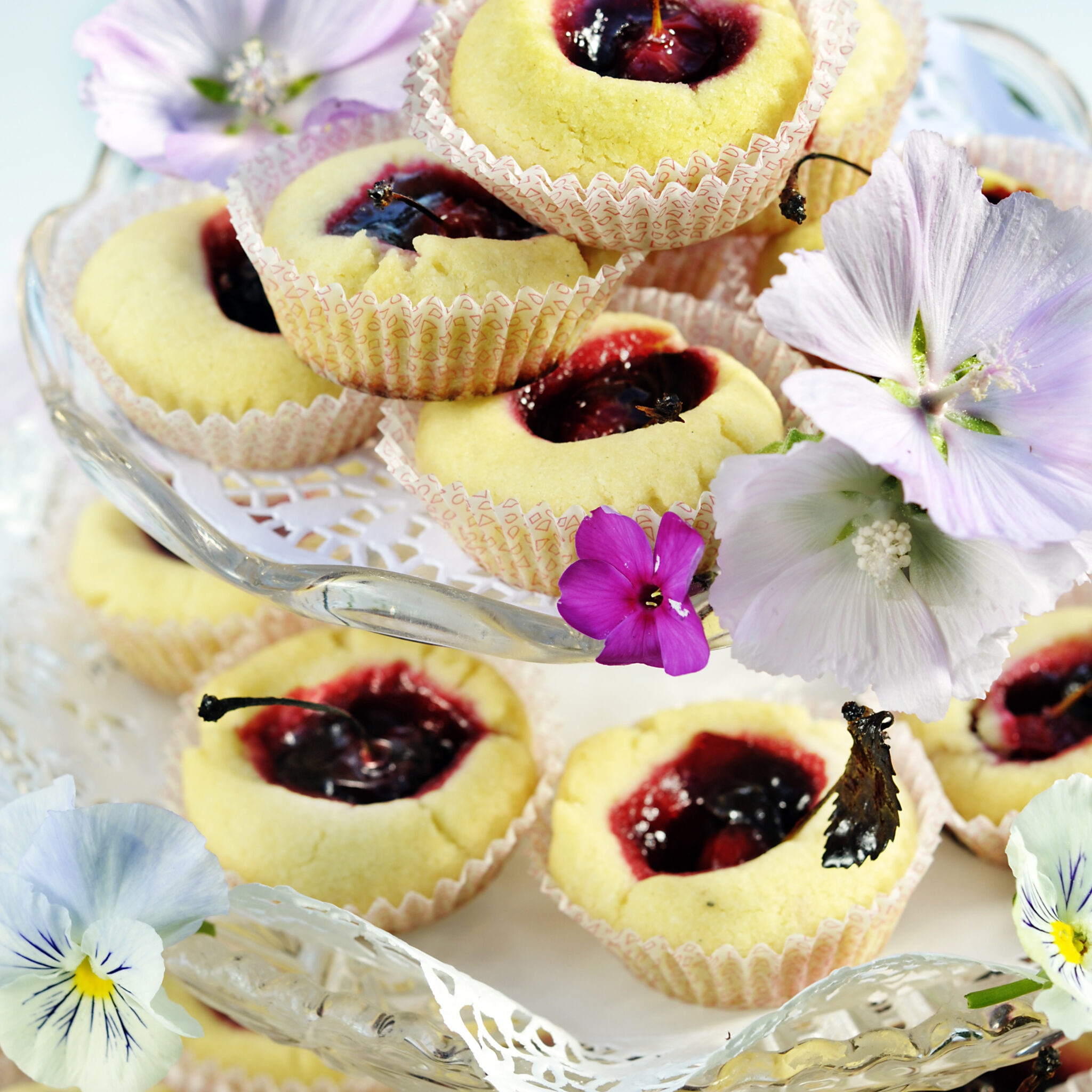 Lätt mandelkaka med äggkräm och limemarinerade jordgubbar