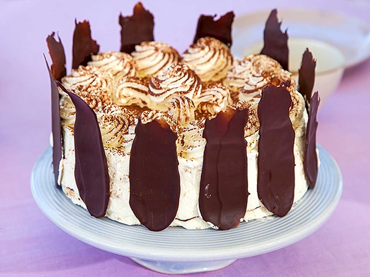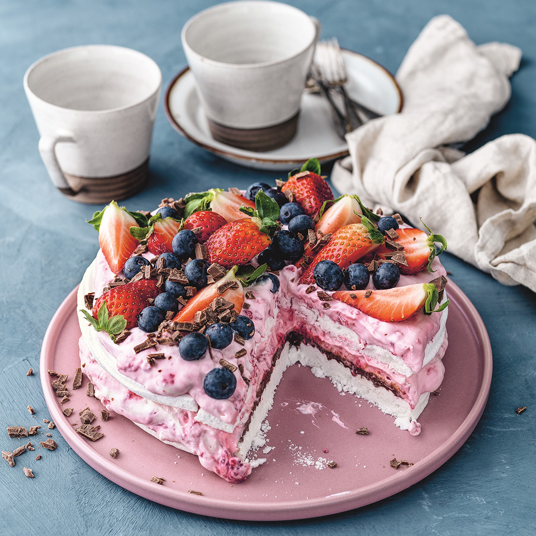 Vit chokladkaka med vaniljgrädde och jordgubbar