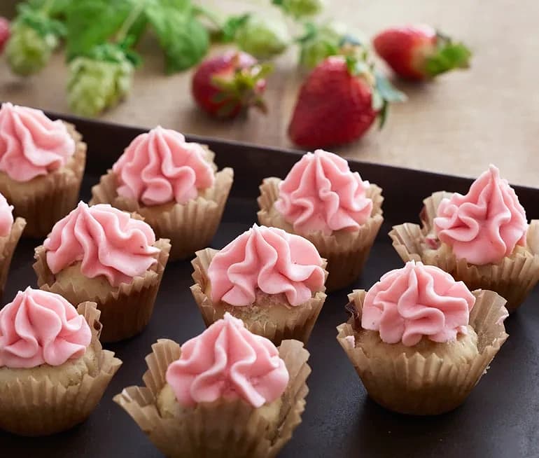 Jordgubbsmuffins med jordgubbsfrosting